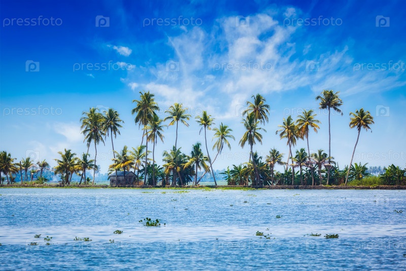Пальмы в водоемах штата Керала.Аллепей, штат Керала, Индия