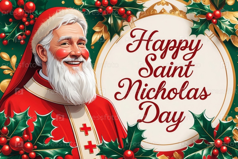 Открытка с праздничным баннером на православный праздник в честь Дня святого Николая AI Generative