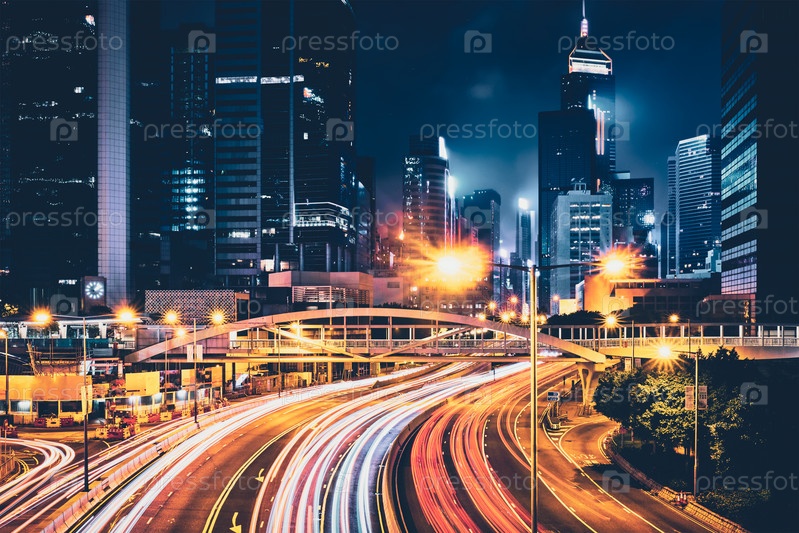 Уличный трафик в Гонконге ночью