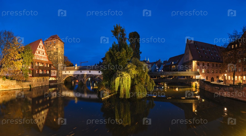 Nuremberg's gorodsky home of bergu rivers Pegnits from Maxbrukee Нюрнберг, Франкония, Бавария, Германия