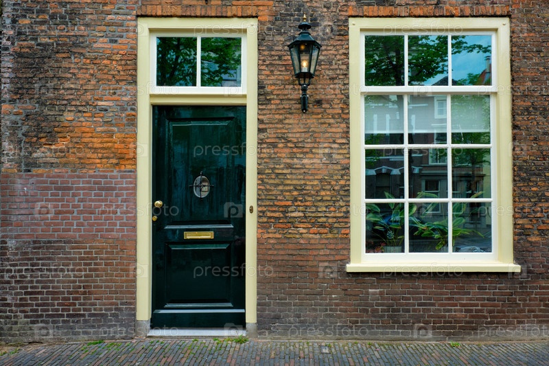 Вид на улицу Голландии Старый дом у окна.Дельфт, Нидерланды