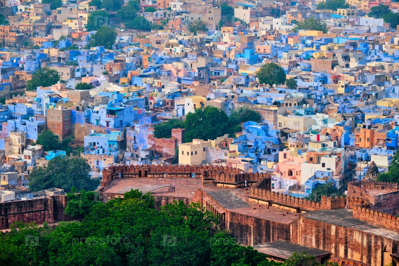 Вид с воздуха Голубого города Джодхпура.Жодфур, Раджастхан, Индия