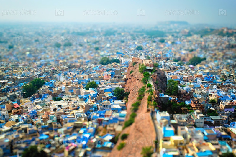 Аэрофотосъемка Джодхпура, также известного как Голубой город из-за ярко-синих домов браминов вокруг форта Мерангарх
