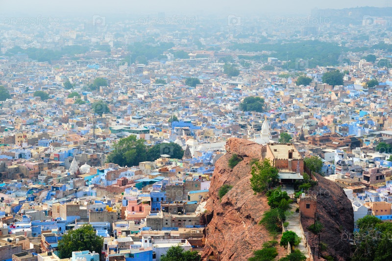 Вид с воздуха на Джодхпур, также известный как Голубой город из-за ярких браминских домов вокруг форта Мерангарх