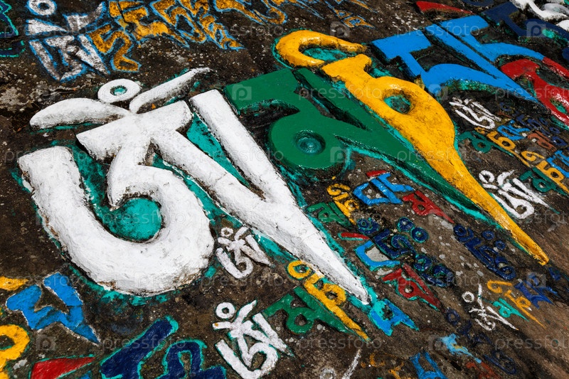 Тибетская буддийская мантра на камнях