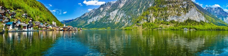 Австрийское туристическое направление - это панорама деревни Холлштатт и горного озера Халлстаттер в Австрии в австрийских Альпах. регион Зальцкаммергут, Австрия