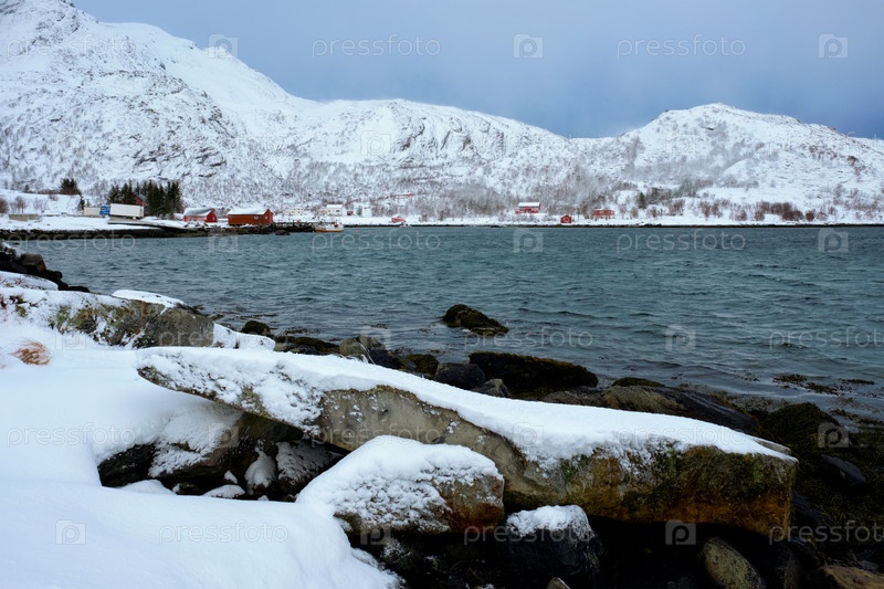 Красные дома в Норвегии зимой