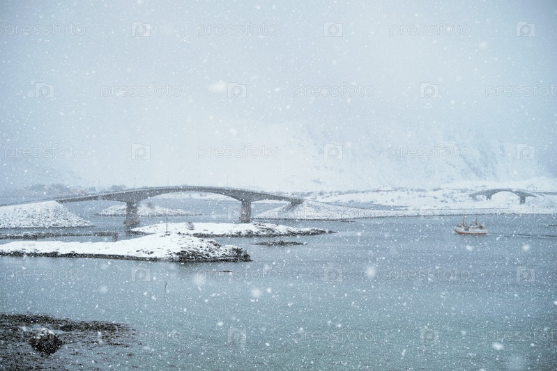 Снегопад на Лофотенских островах, Норвегия