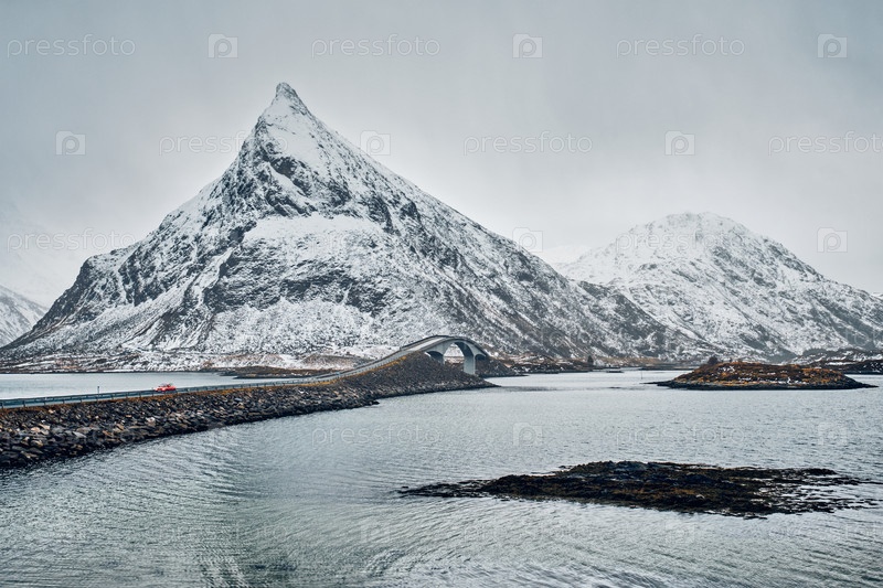 Фредвангские мосты Зимой.Остров Лофотенский, Норвегия