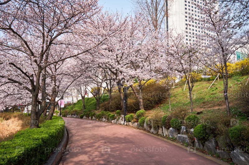 Вишневая аллея, цветущая в парке