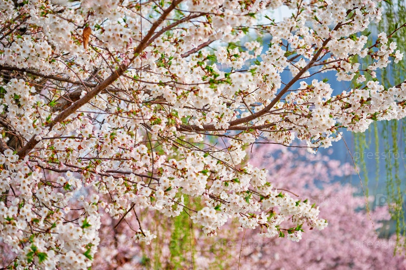 Вишневые цветки цветут на фоне весной, Южная Корея