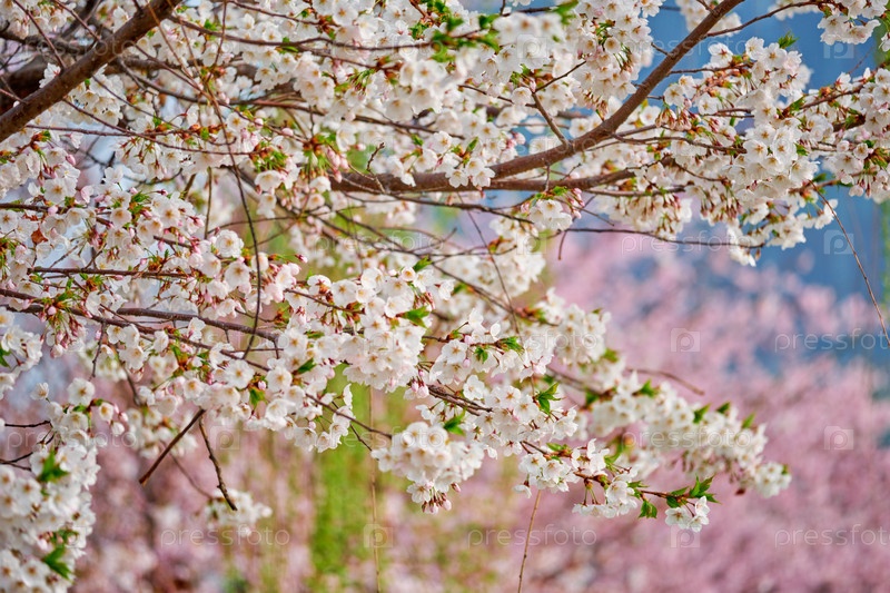 Вишневые цветки цветут на фоне весной, Южная Корея