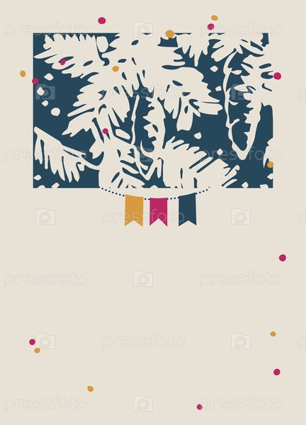 Векторная открытка с рождественской елкой, сосновыми шишками и гирляндой в винтажном стиле