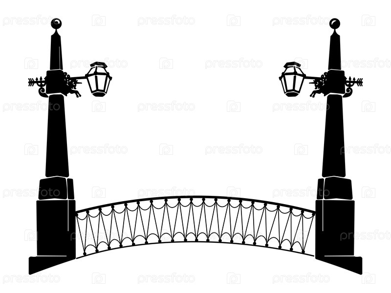 Литой железный мост с фонарями в европейском городе. вектор