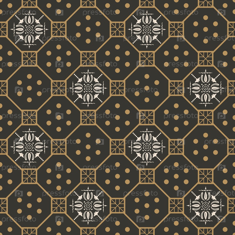 Векторный геометрический бесшовный рисунок в стиле Chinoiserie с винтажным золотом и серым