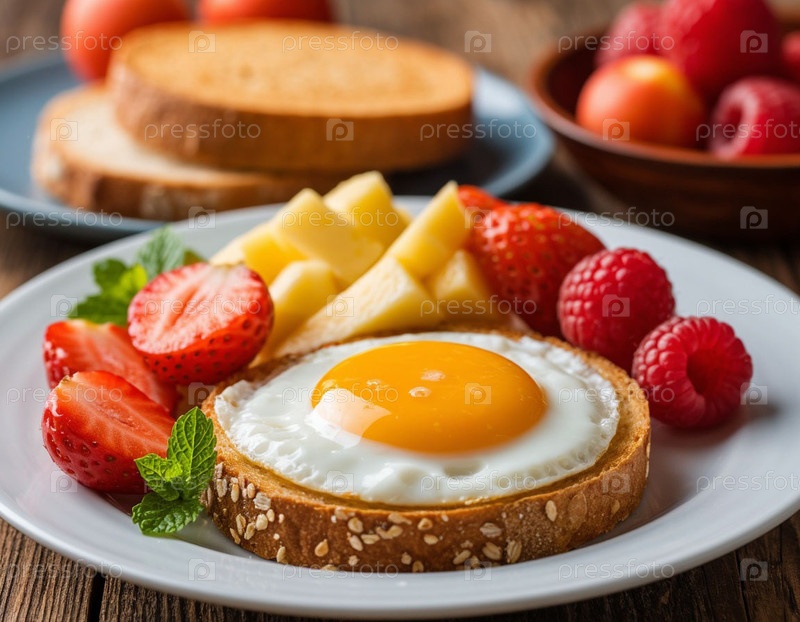 Завтрак на столе крупный план.Создано Ai