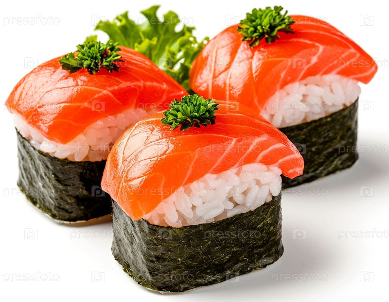 Суши на белом фоне, японская еда