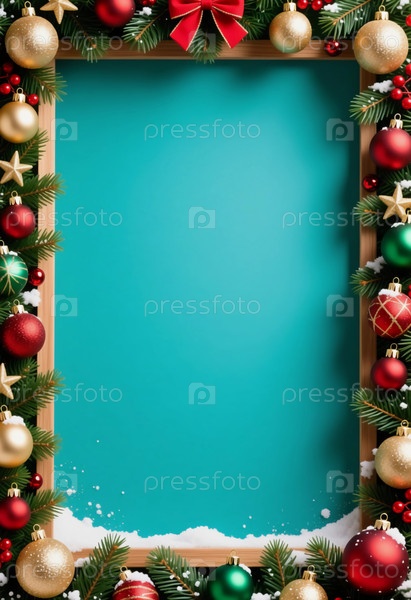 Яркая праздничная рама, украшенная блестящими красными, золотыми и зелеными декорациями, окруженная сосновыми ветвями и праздничными орнаментами, идеально подходит для генеративного искусственного интеллекта сезонных рождественских и новогодних поздравлен