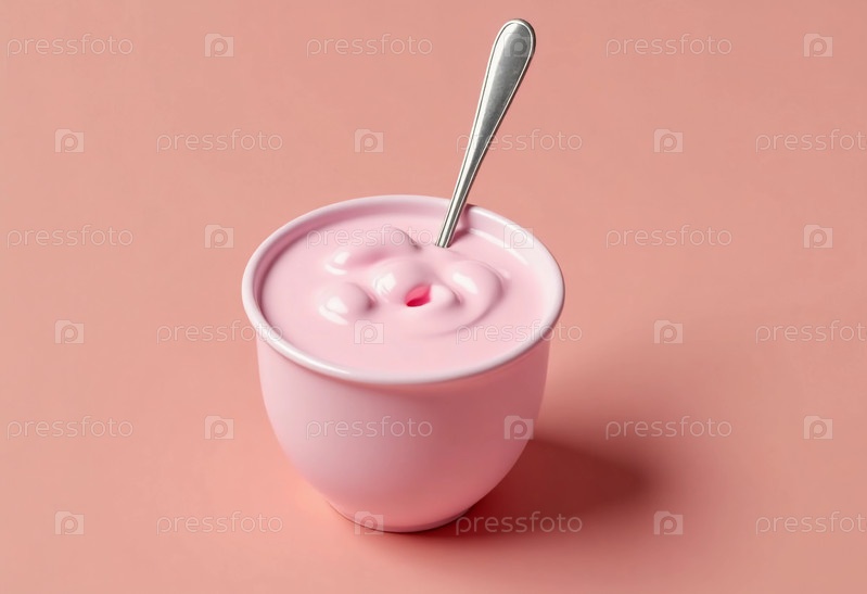 малиновый йогурт привлекательно сидит в мягкой розовой миске, излучая кремообразную и гладкую текстуру, идеально подходящую для обеденной закуски или десерта