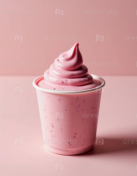 Кремный вихрь малинового йогурта сидит в пастельной чашке, излучая мягкое розовое очарование, которое приглашает к удовольствиям