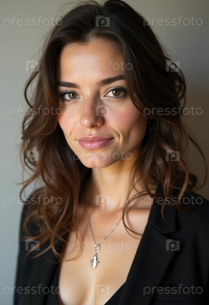 Потрясающая молодая женщина из Сербии излучает уверенность своим стильным нарядом и очаровательной Generative AI улыбкой
