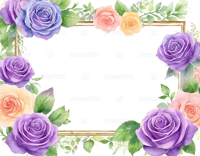 Элегантные акварельные краски фиолетовых и пастельных роз создают очаровательный макет карты, идеально подходящий для любых праздников или специальных случаев с пустым пространством для личных сообщений