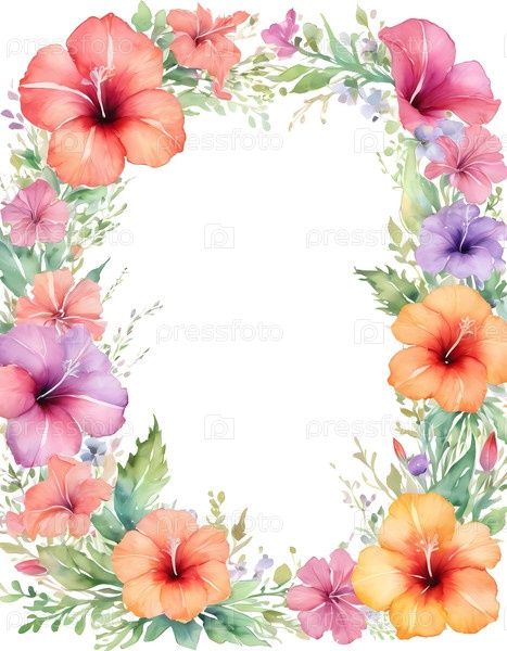 Яркие цветы гибискуса и петунии создают пустое пространство для творческих дизайнов карт и праздничных сообщений на все случаи