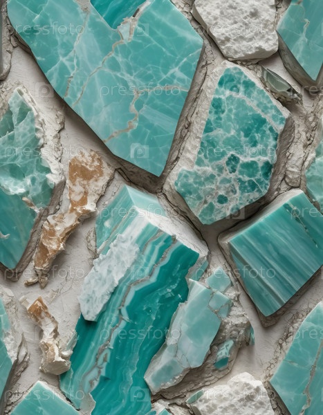 Яркие оттенки бирюзового цвета возникают из резных кусочков амазонского минерального камня, каждый из которых показывает различные текстуры и узоры, раскрывая мастерство природы во всех аспектах генеративного ИИ