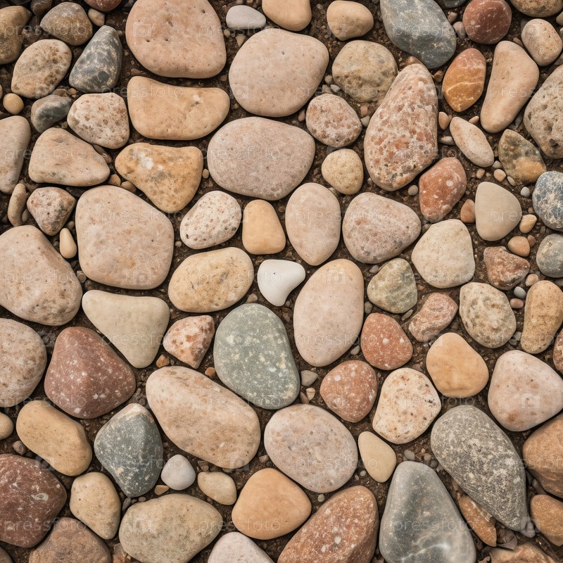 Близкий взгляд показывает разнообразие естественно гладких камней на пляже, демонстрируя органическую палитру земляных тонов, которые вызывают спокойствие и покой