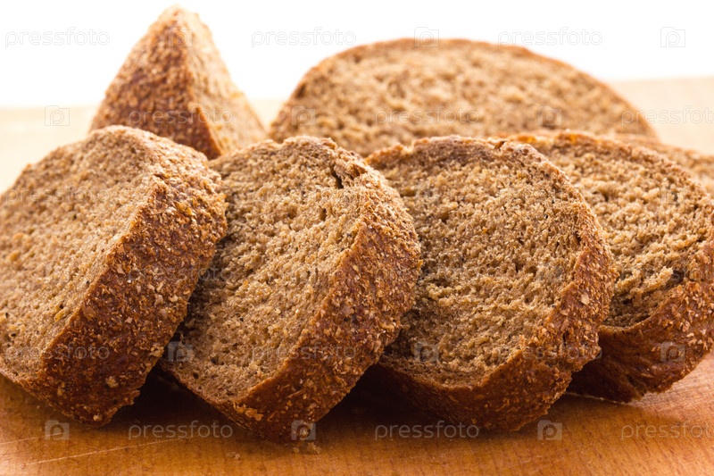 Ржаной хлеб с отрубями нарезанный на разделочной деревянной доске