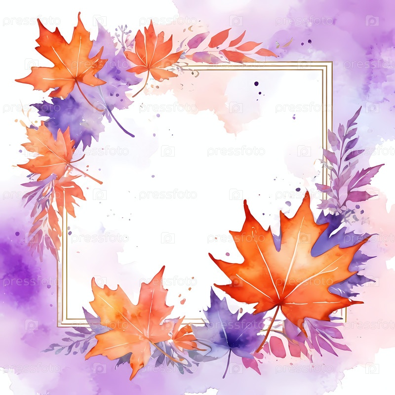 Красочный акварельный фон имеет ярко оранжевый осенний и фиолетовый кленовые листья. идеально подходит для ремесел Хэллоуина или сезонных украшений с достаточным пространством для копирования
