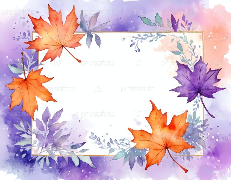 Яркая акварельная краска в оранжевых и фиолетовых оттенках создает праздничный фон из кленовых листьев.Этот яркий дизайн идеально подходит для украшений Хэллоуина или приглашений на мероприятия