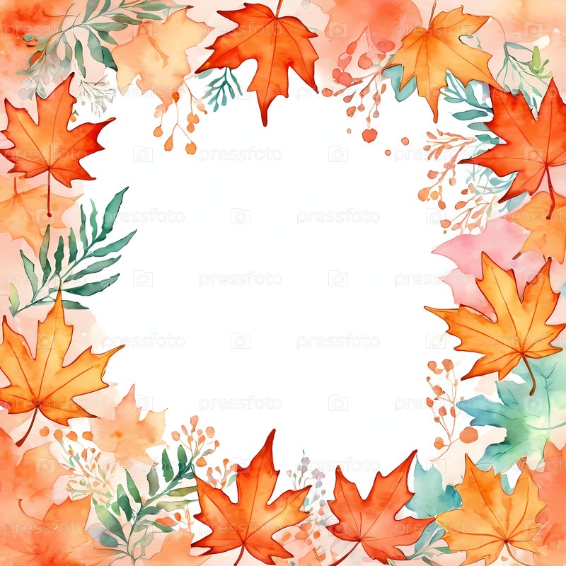 Яркий фон имеет осенние оранжевые и зеленые кленовые листья в стиле акварели, идеально подходят для темы Хэллоуина.Дизайн включает достаточно места для копирования текстов и сообщений генеративного ИИ
