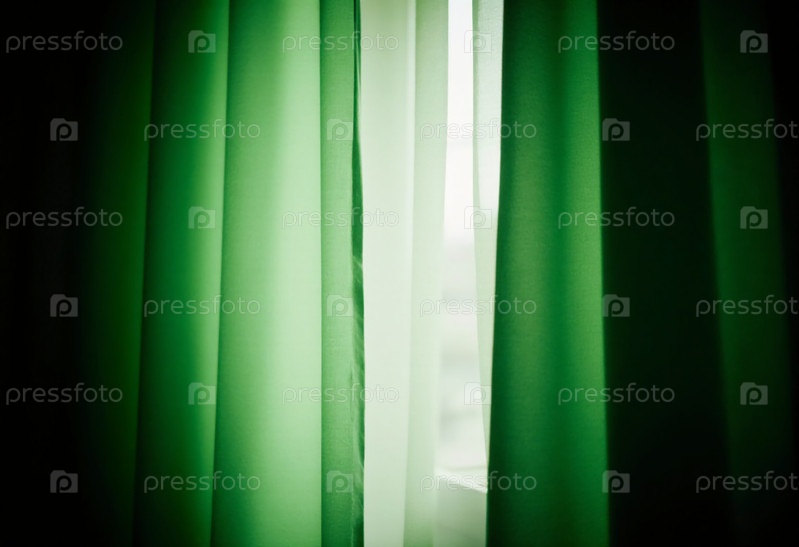 Зеленые шторы мягко раскачиваются, когда солнечный свет проходит через окно и освещает уютную комнату.Мягкий свет создает спокойную атмосферу, идеальную для отдыха