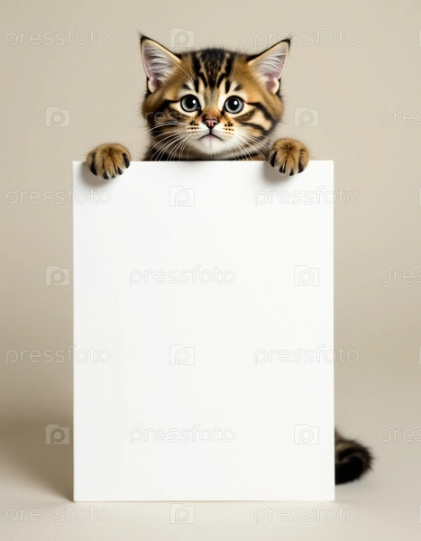 Любопытный котенок смотрит на пустое полотно, приглашая к творчеству и воображению в теплый уютный интерьер