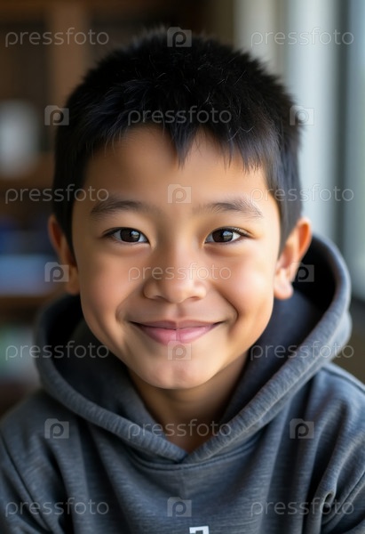 Веселый молодой человек с Аляски гордо брится в мягкую серую свитерку.Его улыбка отражает дух его общины и культуры