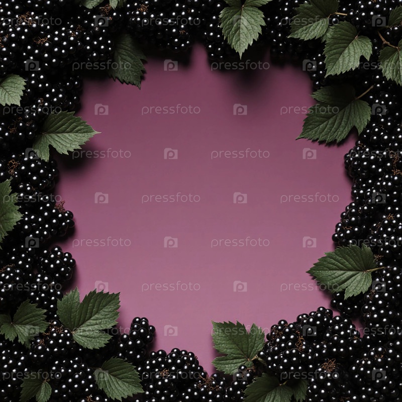Голуби и зеленые листья расположены вокруг пустого фиолетового пространства, создавая свежий и яркий каркас, подходящий для летних блюд или тем, связанных со здоровьем