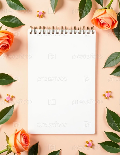 Мягкие пастельные оттенки обрамляют чистый блокнот, приглашая вдохновение из Generative AI