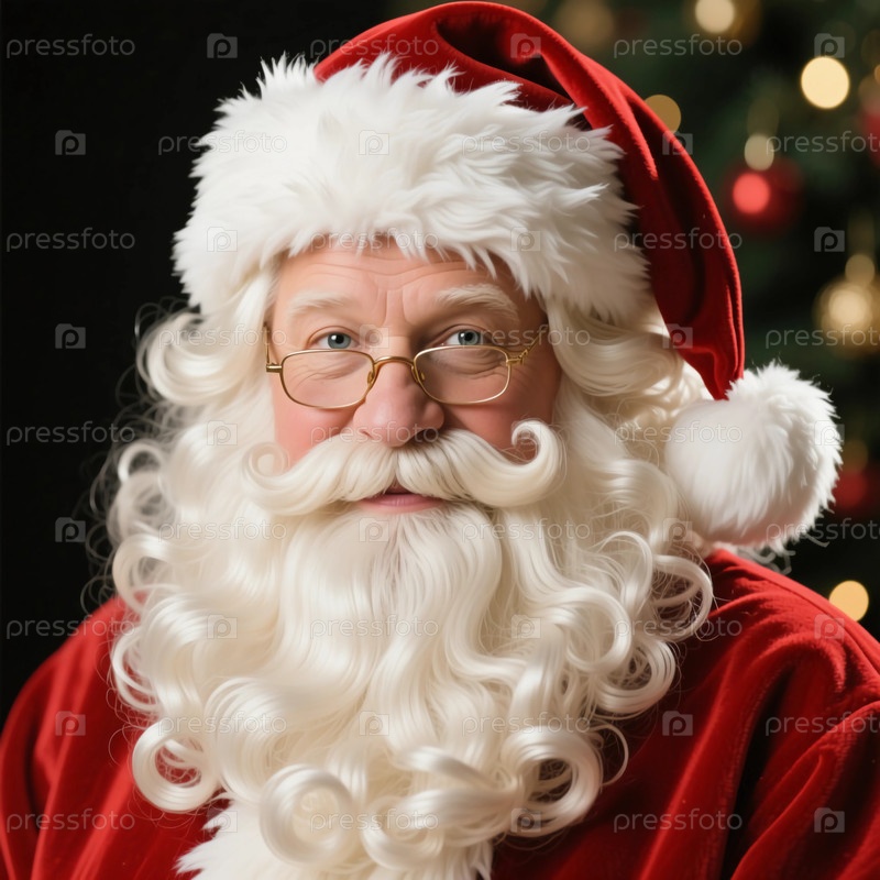 Веселый мужчина в ярко-красном костюме и пушистой белой бороде тепло улыбается, воплощая дух Рождества в праздничной обстановке в комнате, украшенной красочными ювелирными изделиями генеративного ИИ