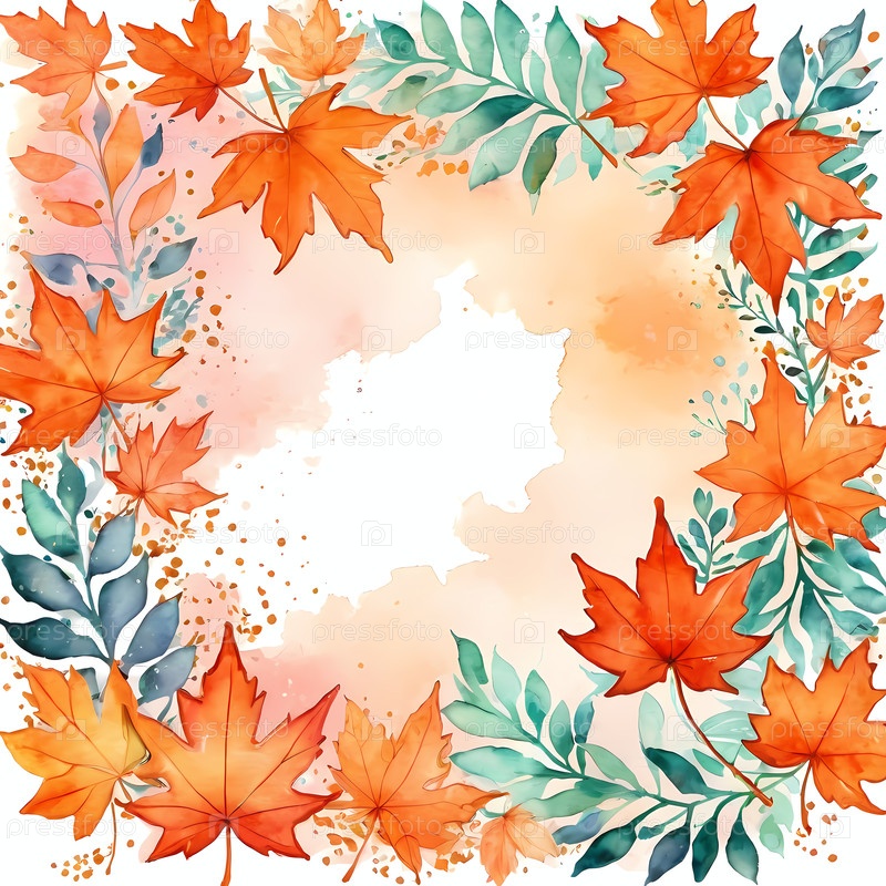 Яркие осенние листья в оранжевых и зеленых оттенках красят оживленную сцену, подходящую для Хэллоуина.Эффект акварели добавляет праздничный тон к сезонным коллекциям Generative AI
