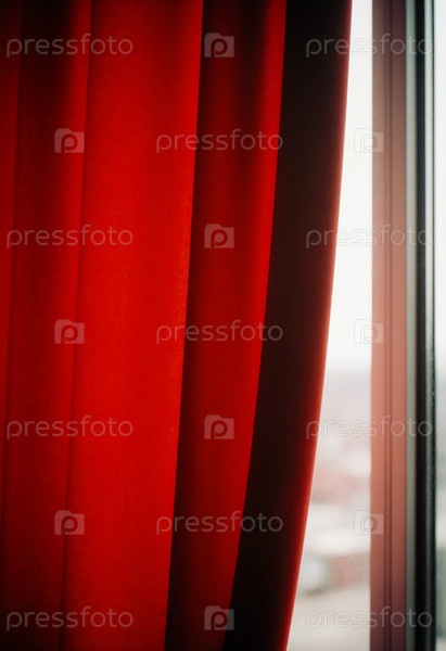 Толстые, ярко-красные шторы висят возле окна и позволяют мягкому свету проникать в помещение. ткань добавляет тепла и цвета в комнату, создавая уютную атмосферу генеративного ИИ