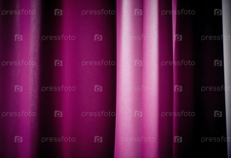Мягкие фиолетовые лиловые шторы красиво висят в комнате, слегка раскачиваясь при нежном ветре, а диффузный свет заполняет пространство, добавляя тепло и спокойствие