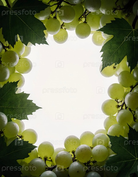 Круг свежих зеленых виноград, окруженный лиственничными лозами, создает естественную рамку.Свет проникает сквозь него, подчеркивая свежесть и красоту фруктов в спокойной обстановке