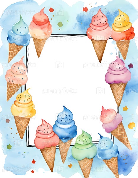 Очаровательные акварельные мороженые шишки создают радостный дизайн карты пустого пространства для сладких воспоминаний и веселых летних собраний генеративного ИИ