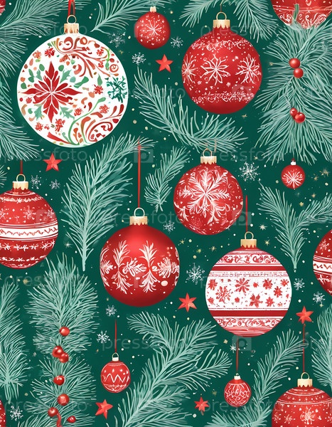 Ярко окрашенные украшения рождественской елки приносят радость и тепло в уютное пространство, демонстрируя сложные дизайны и пышную зелень для праздничного сезона генеративного ИИ