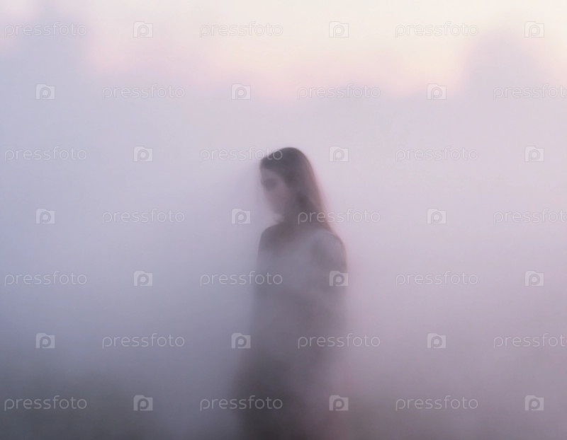 Молодая женщина стоит неподвижно в утренней дымке, окруженная мягким туманом, который создает призрачное видение.Свет нежно освещает ее фигуру, добавляя генерирующий ИИ к атмосфере