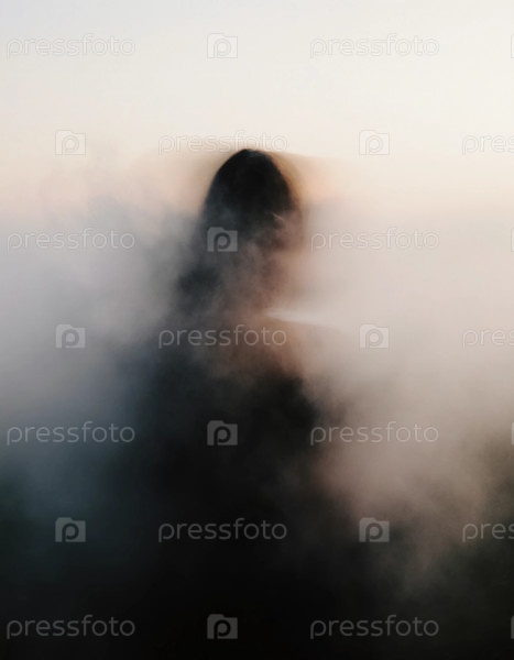 В утреннем свете разворачивается расплывчатая сцена, показывающая призрачную фигуру, окруженную туманом.Мягкое сияние добавляет мечтательное качество к спокойной атмосфере генеративного ИИ