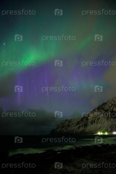 Северное сияние северной луны.Острова Лофотен, Норвегия
