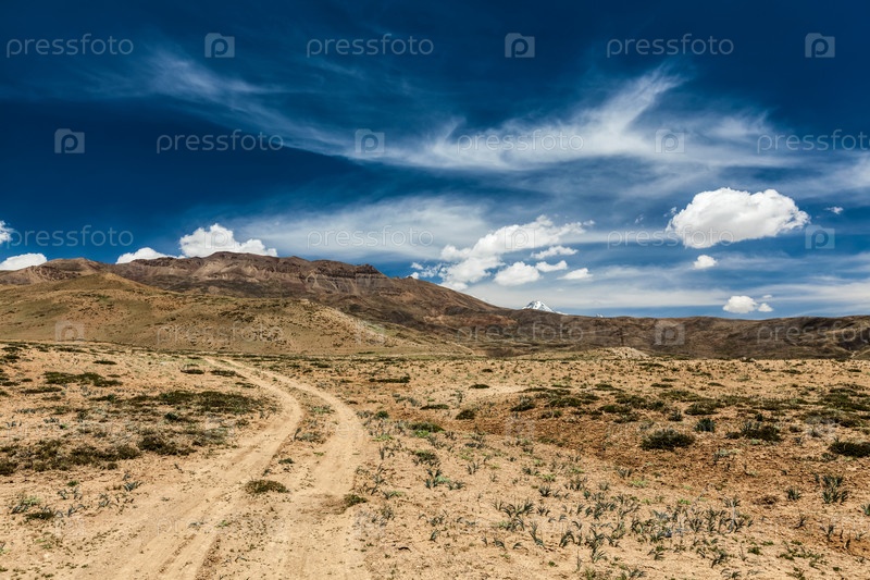 Грязная дорога в долине Спити в Гималаях Долина Спити, Химачал-Прадеш, Индия