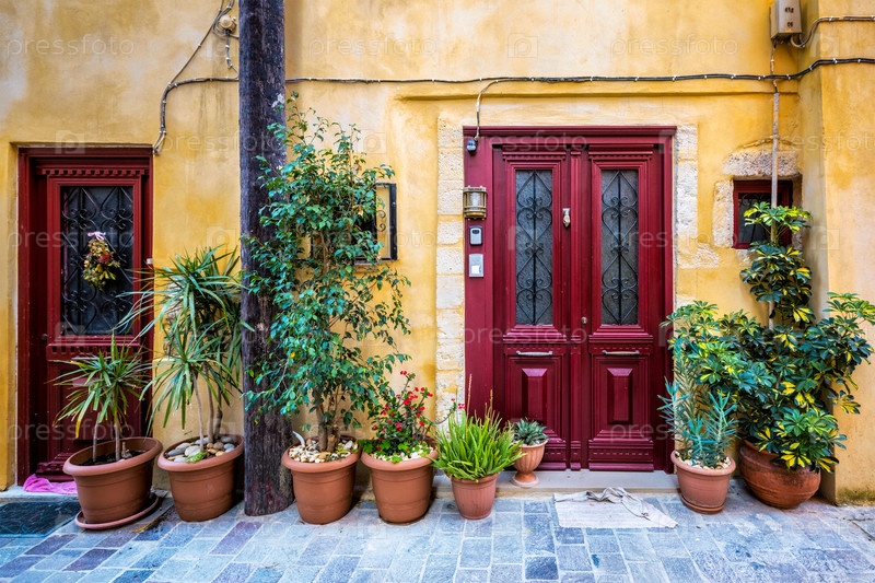 Живописные улицы Ханьи Венецианский город с уютными старыми домами.Утром в деревне Ханья греческий Чанака, остров Крит, Греция